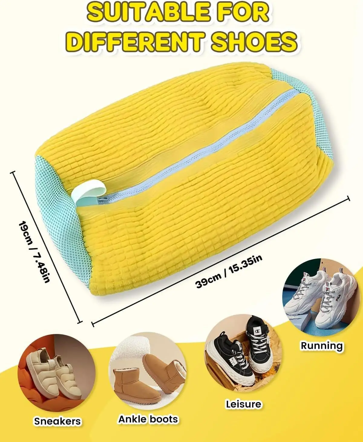 Keep your sneakers spotless with this Shoe Laundry Bag with Zipper. The soft inner fluff protects shoes from damage while washing, and the durable mesh design ensures a deep clean. Comes with a built-in shoe brush for removing dirt easily. Perfect for all types of sneakers and safe for any washing machine.